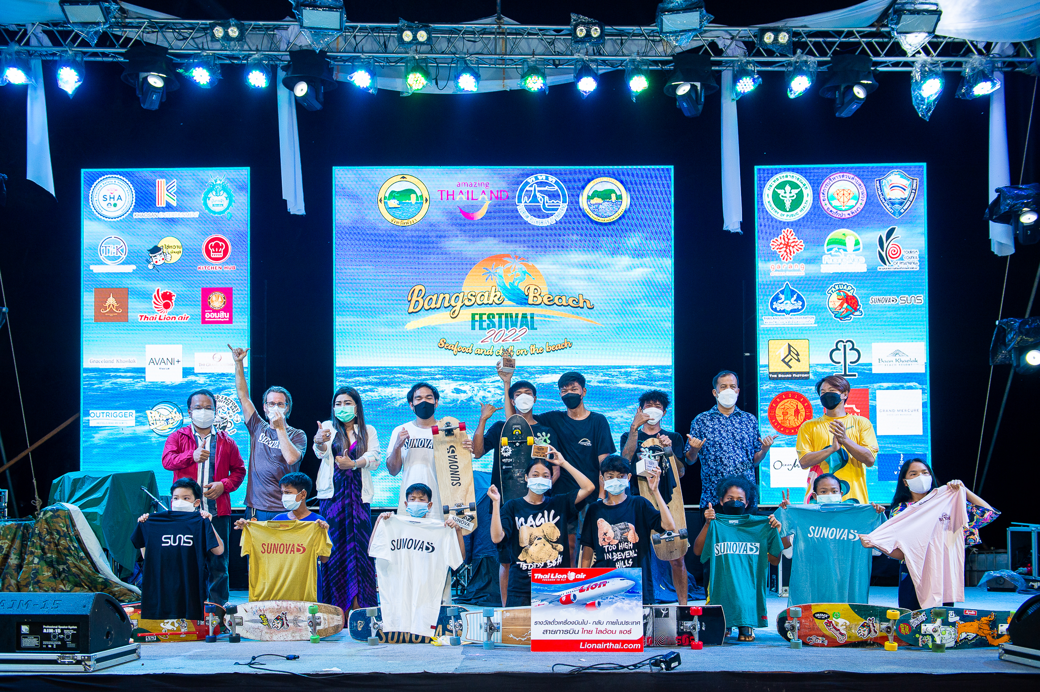 น.ส. ภัทรมน แสงเจริญ ผู้จัดการสถานีภูเก็ต เป็นตัวแทนสายการบินไทย ไลอ้อน แอร์ เข้าร่วมงาน Bangsak Beach Festival 2022 ซึ่งจัดขึ้นเมื่อวันที่ 25-27 มีนาคม ที่ผ่านมา ณ ริมหาดบางสัก จ. พังงา โดยสายการบินไทย ไลอ้อน แอร์ ได้ร่วมเป็นสปอนเซอร์ในงานครั้งนี้ อีกทั้งได้มอบตั๋วเครื่องบินให้กับผู้ที่ชนะการแข่งขันเล่นเซิร์ฟประเภทต่างๆเป็นรางวัลและมอบรางวัลให้กับผู้ที่ร่วมเล่นเกมตอบคำถามบนเวทีทั้งสามวัน ซึ่งบรรยากาศเต็มไปด้วยความสนุกสนาน และไ้ด้รับการตอบรับจากผู้ที่เข้าร่วมงานเป็นอย่างดี