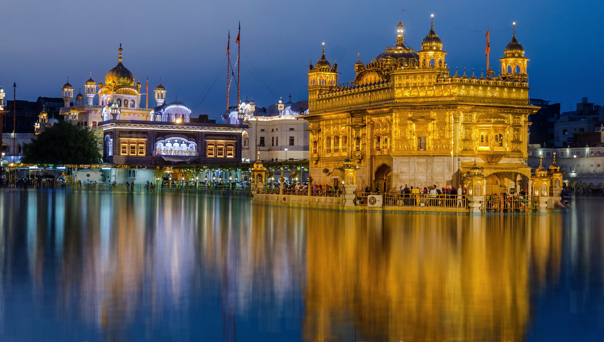 The Golden Temple, also known as Sri Harmandir Sahib, is the most prominent spiritual site in Sikhism. It is located in the city of Amritsar, Punjab, India. The temple is characterized by its unique Sikh architecture, featuring a double-story building with a central dome and a marble causeway leading to it. The upper floors of the temple are covered in gold, giving it its distinctive name.