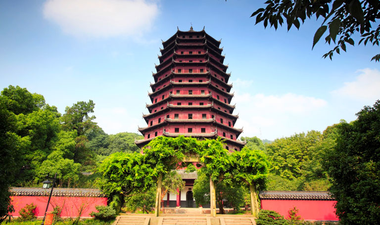Six Harmonies Pagoda is a representative ancient pavilion-style tower in China, located on Yuelun Mountain to the south of the West Lake and facing Qiantang River. It is one of the three renowned pagodas in Hangzhou, together with another two around the West Lake, Baochu Pagoda and Leifeng Pagoda. Because of the height advantage and special location, Liuhe Pagoda is one of the best places to view the splendid Qiantang River Tide. In addition, there is an Ancient China Pagodas Garden near the tower, displaying miniatures of famous pagodas around the country.