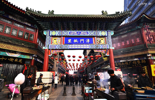 It is a business street located in Nankai District of Tianjin, with the Temple of the Queen of Heaven as its geographical center. There are many stores along this street dealing in jade articles, antiques, traditional handicrafts, especially famous Niren Zhang painted sculptures and Weiji kites. Besides, the street is a popular place to savor the delicious local snacks, such as the Go Believe stuffed buns, Erduoyan (the Ear-hole Lane) Fried Glutinous Cakes and tea soup.