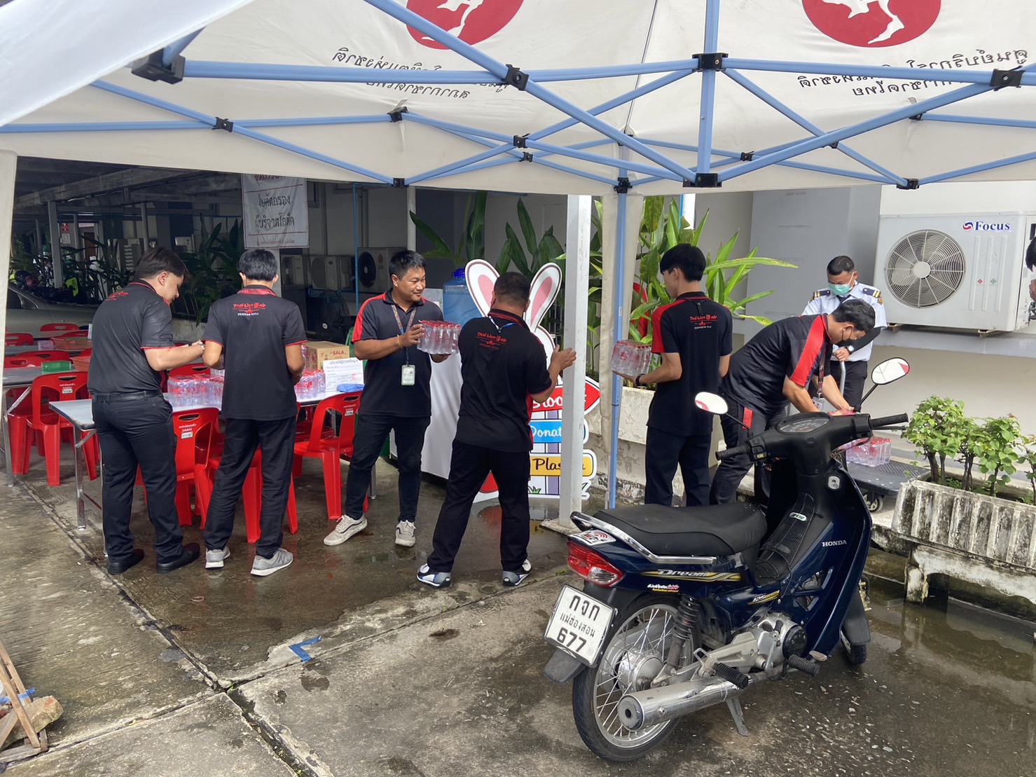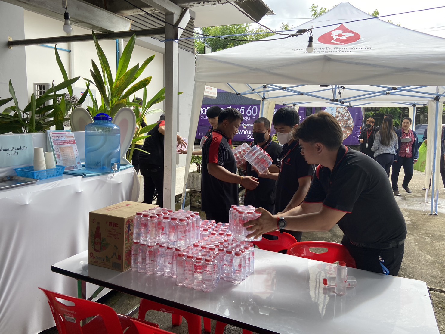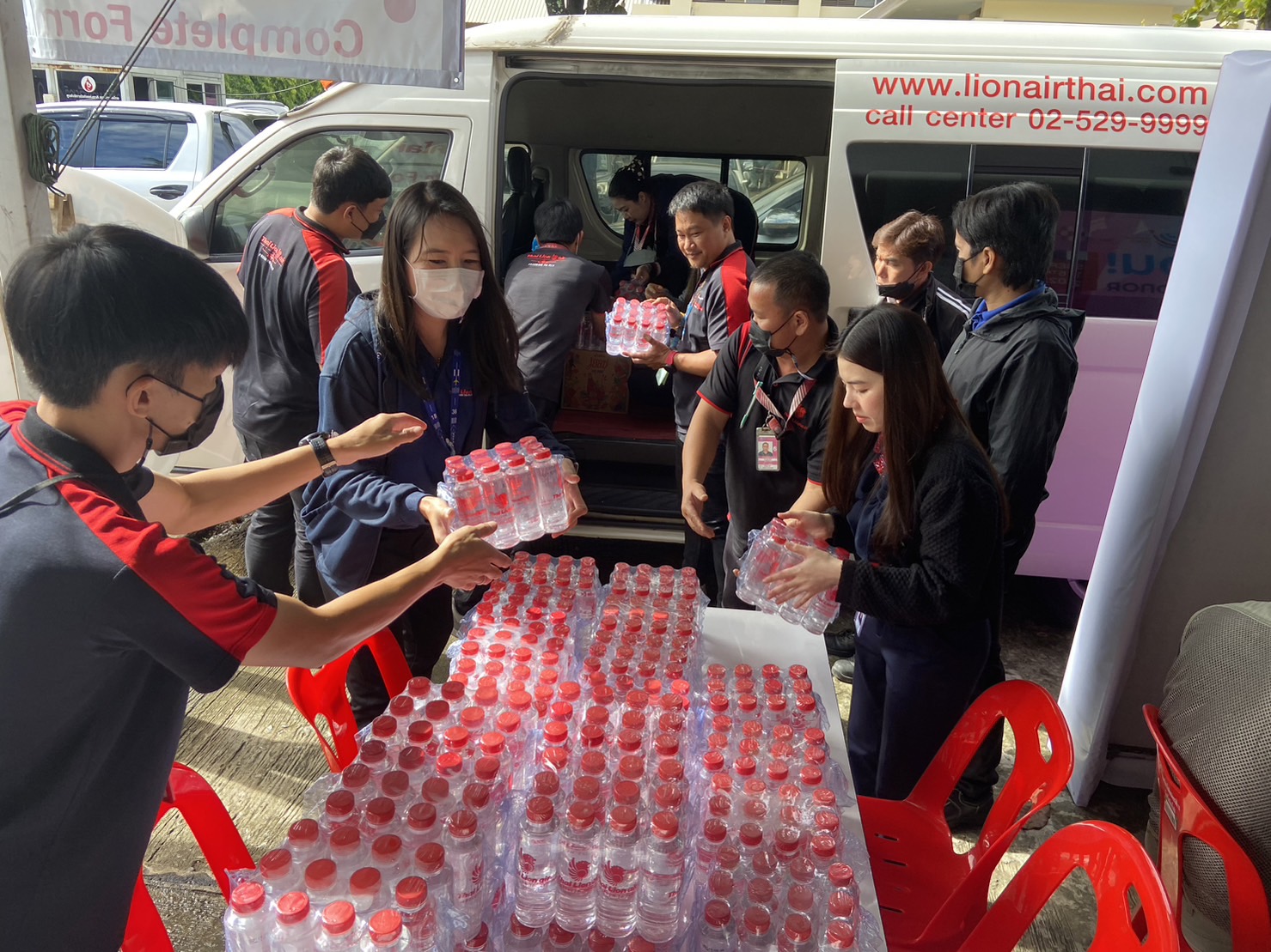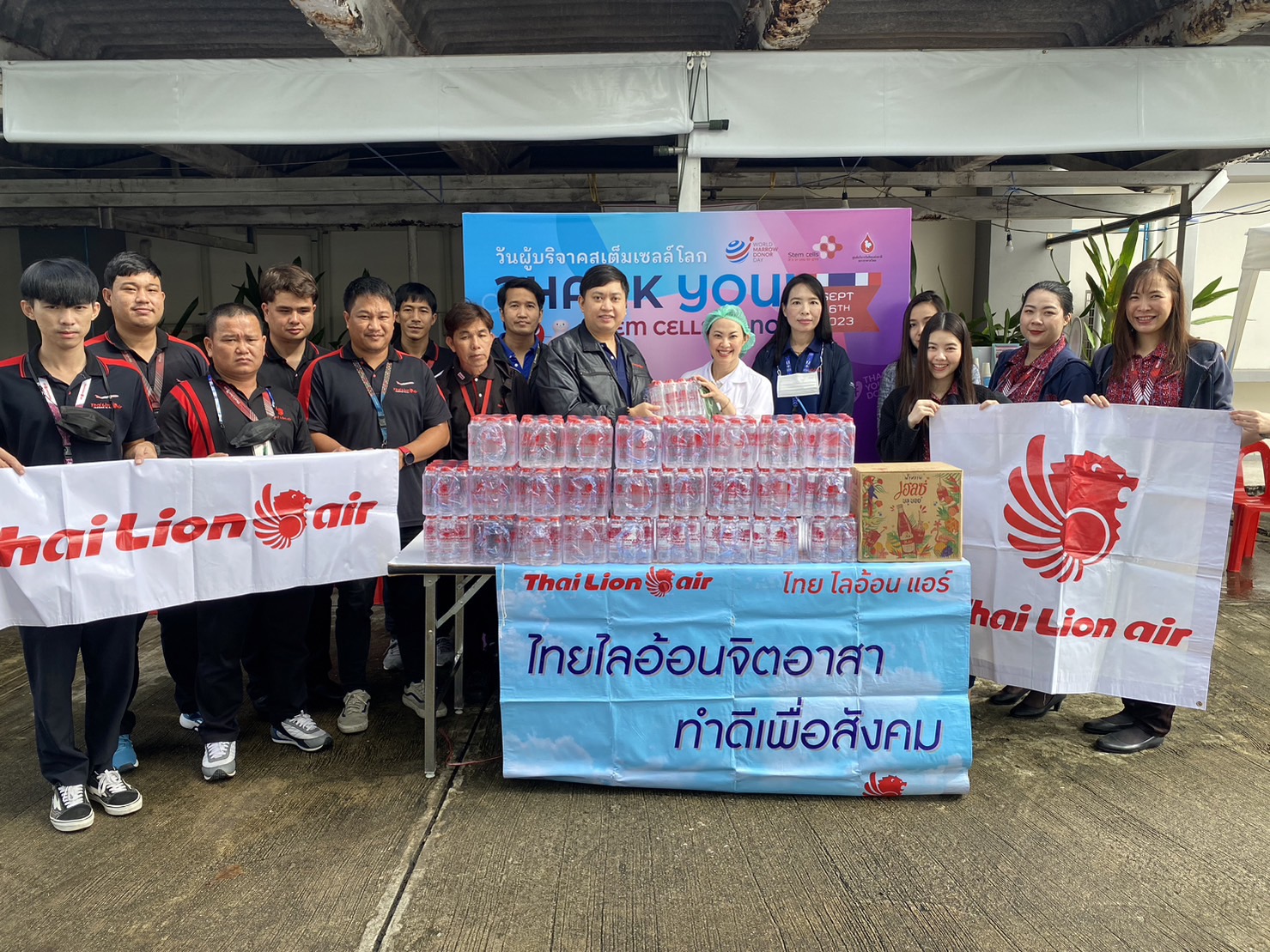 Mr. Kampanart Faller Sangkhanond, Chiang Mai Station Manager, ground staff, and Thai Lion Air Volunteer Club donated supplied drinking water and Red Hale's Blue Boy to Chiang Mai National Blood Service Unit 10th. The donation was received with appreciation by the Red Cross officer in charge of the blood service unit.