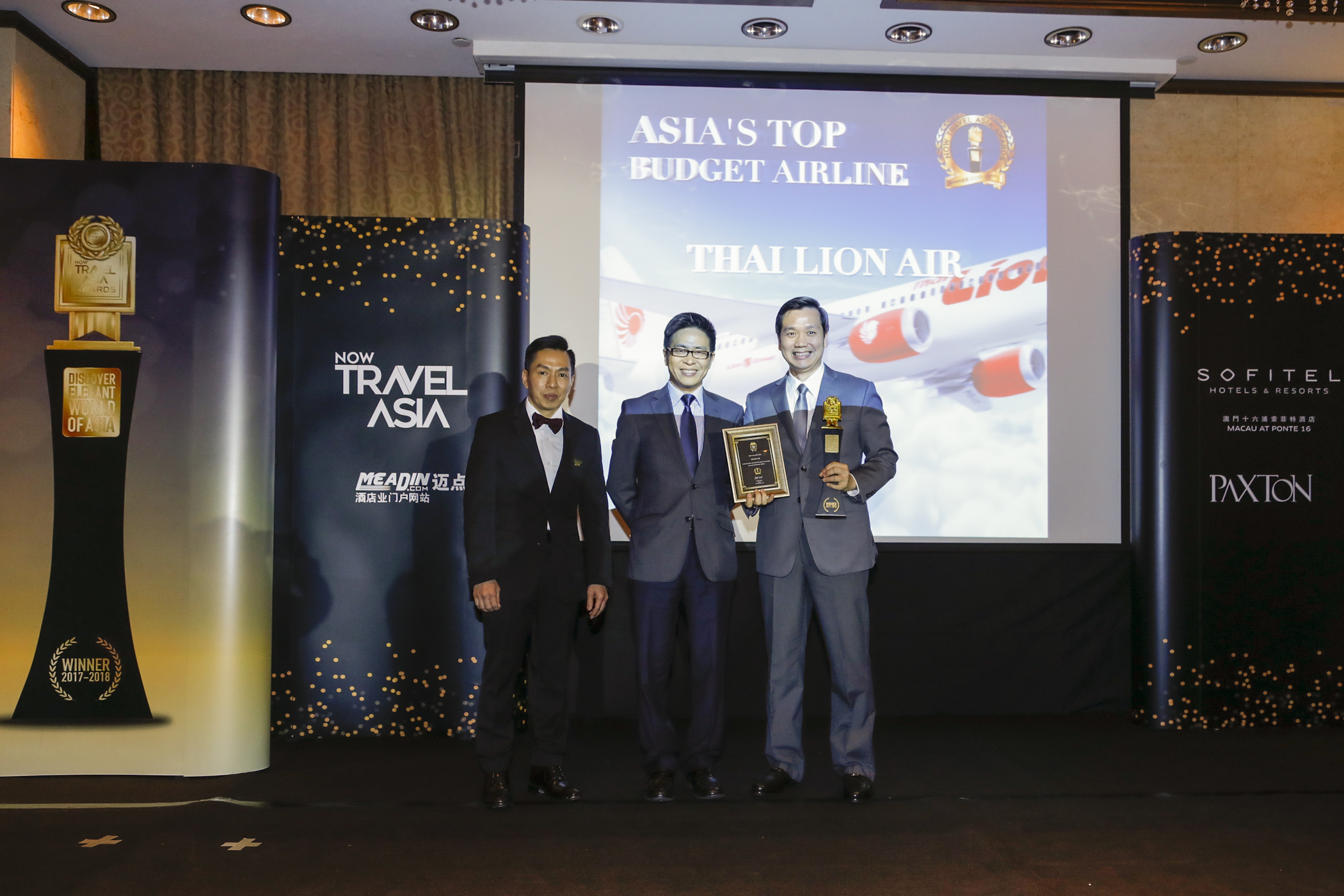 ผู้บริหารสายการบินไทย ไลอ้อน แอร์ เป็นตัวแทนเข้ารับรางวัล ASIA'S TOP BUDGET AIRLINES จากนิตยสาร NOW TRAVEL ASIA ในงาน NOW Travel Asia Awards Gala Ceremony ที่มาเก๊า ซึ่งได้รับการโหวตในสาขาของสายการบินต้นทุนต่ำยอดเยี่ยม โดยได้แยกประเภทการโหวต ที่มีทั้งแหล่งท่องเที่ยว สถานประกอบการด้านท่องเที่ยว และสายการบิน เป็นต้น เพื่อกระตุ้นการเดินทางของนักท่องเที่ยว และประชาสัมพันธ์แหล่งท่องเที่ยวรวมทั้งบริการทางการท่องเที่ยวของประเทศไทย