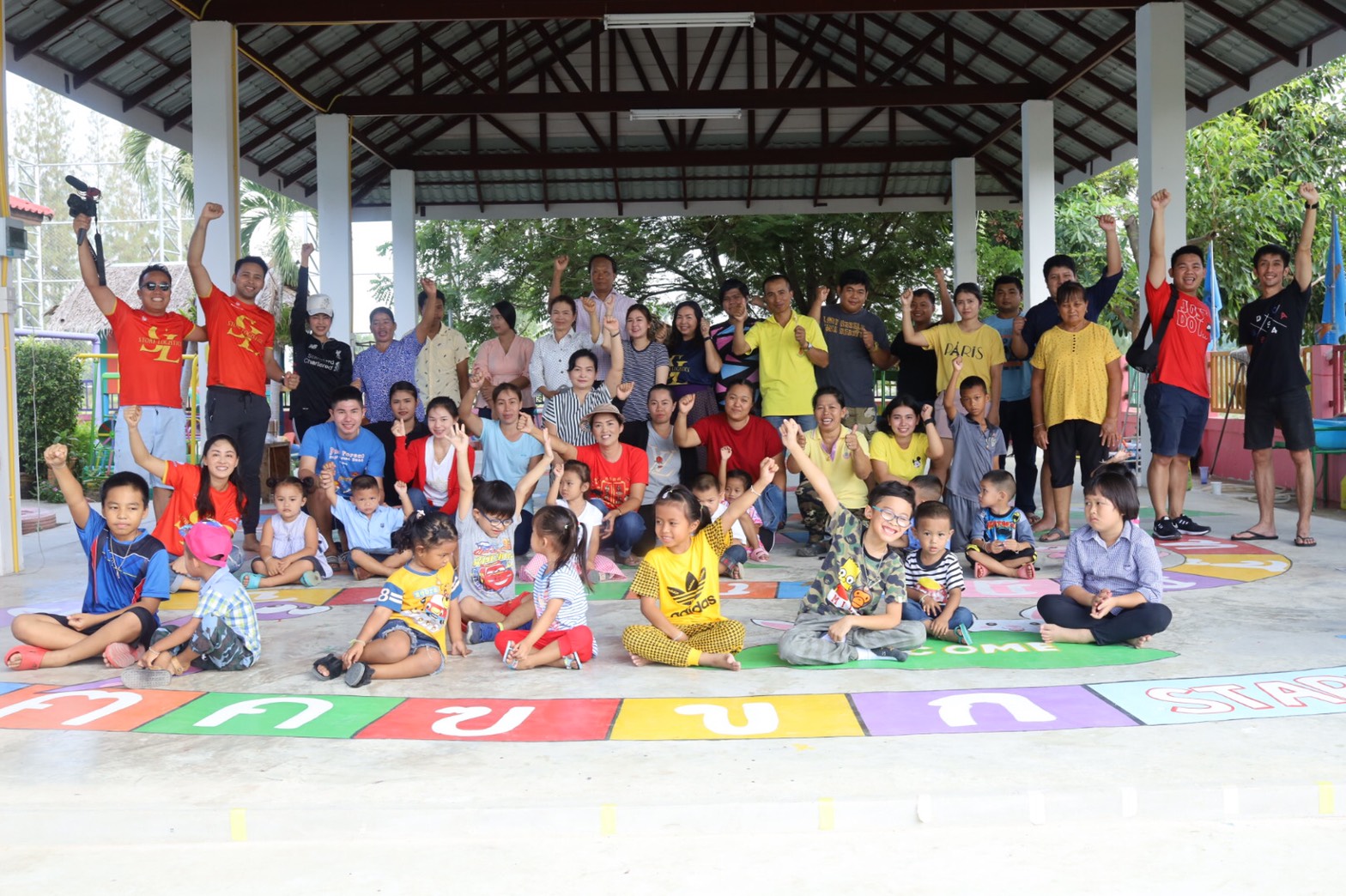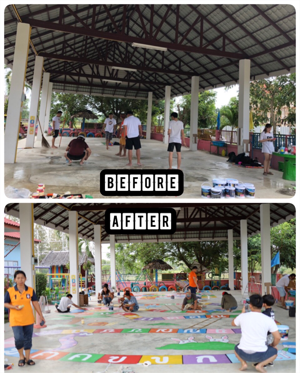 Management and staff from Thai Lion Air painting and drawing cartoons on the wall and floor. Moreover, doing landscape improvements on children’s playground, rest rooms, kitchen room, including all of educating materials are also included. We are so happy to see their kids smile