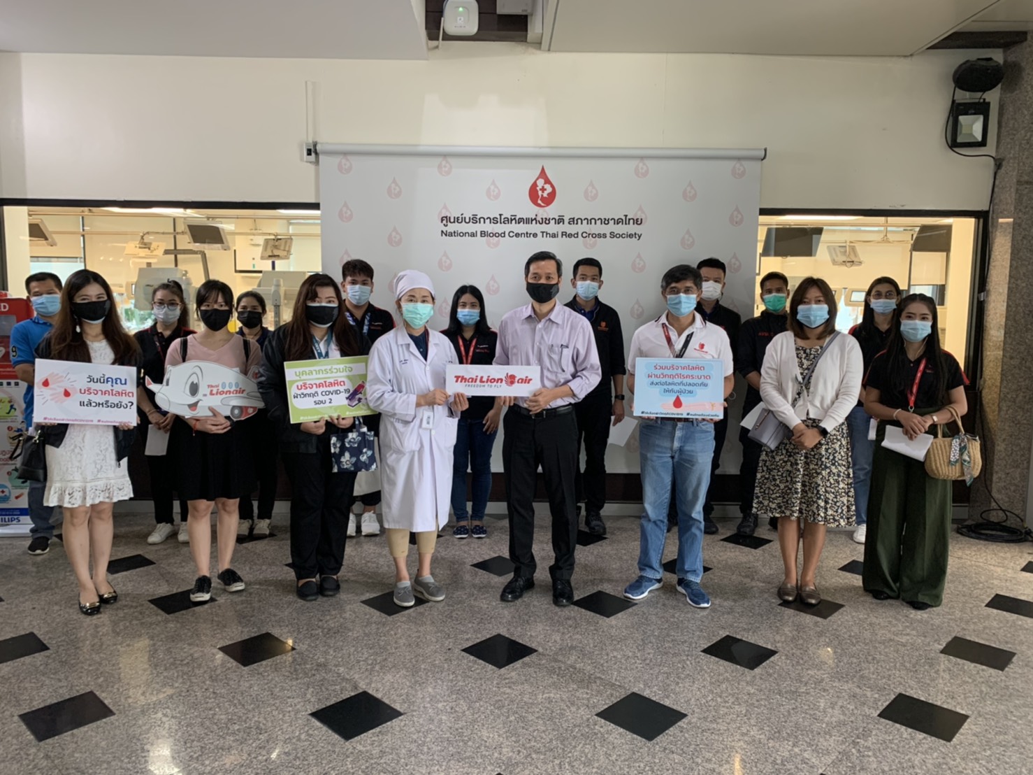 April 30, 2021 - Representative of Management and staff of Thai Lion Air joined Blood Donation at the Thai Red Cross Society. Due to the situation of COVID-19 outbreak, the Thai Red Cross Society is in low supply of blood and the number of people donation has decreased. So, the donors can ensure that Covid-19 prevention measures of the Thai Red Cross Society are safe and protected.