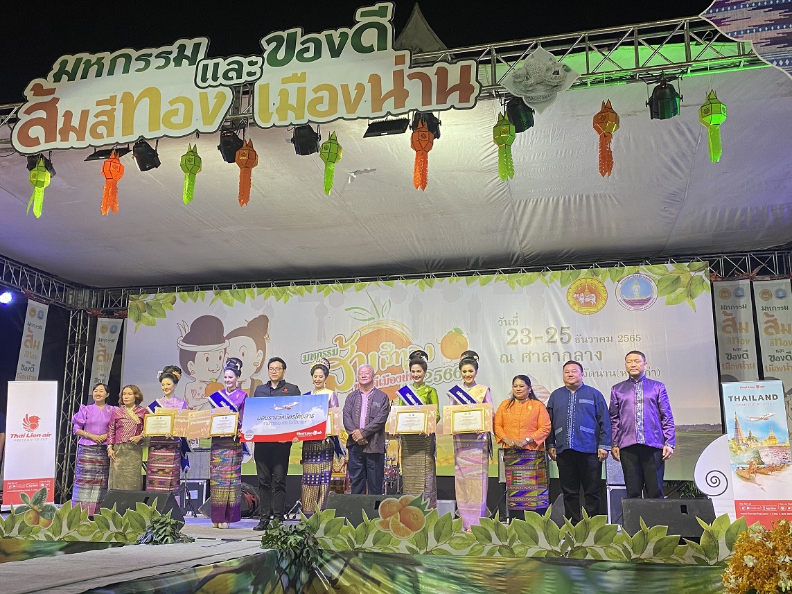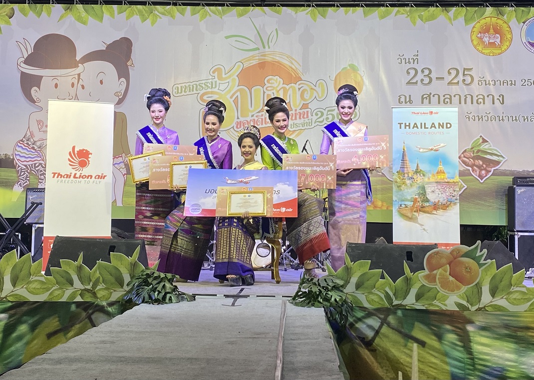 Thai Lion Air sponsors The Golden Orange Princess Beauty Contest in Nan 2023 and awarded domestic flight ticket to the winner of the contest. This event was honored by the Governor of Nan Province to open the ceremony of the Golden Orange and Good Products Fair of Nan 2023, to promote tourism of Nan Province for people around the world to know. And this event helps farmers in Nan province to elevate the golden orange with the sweet taste and delicious. And the Golden Orange and Good Products Fair of Nan 2023 was held at Nan Provincial City Hall (the old hall).