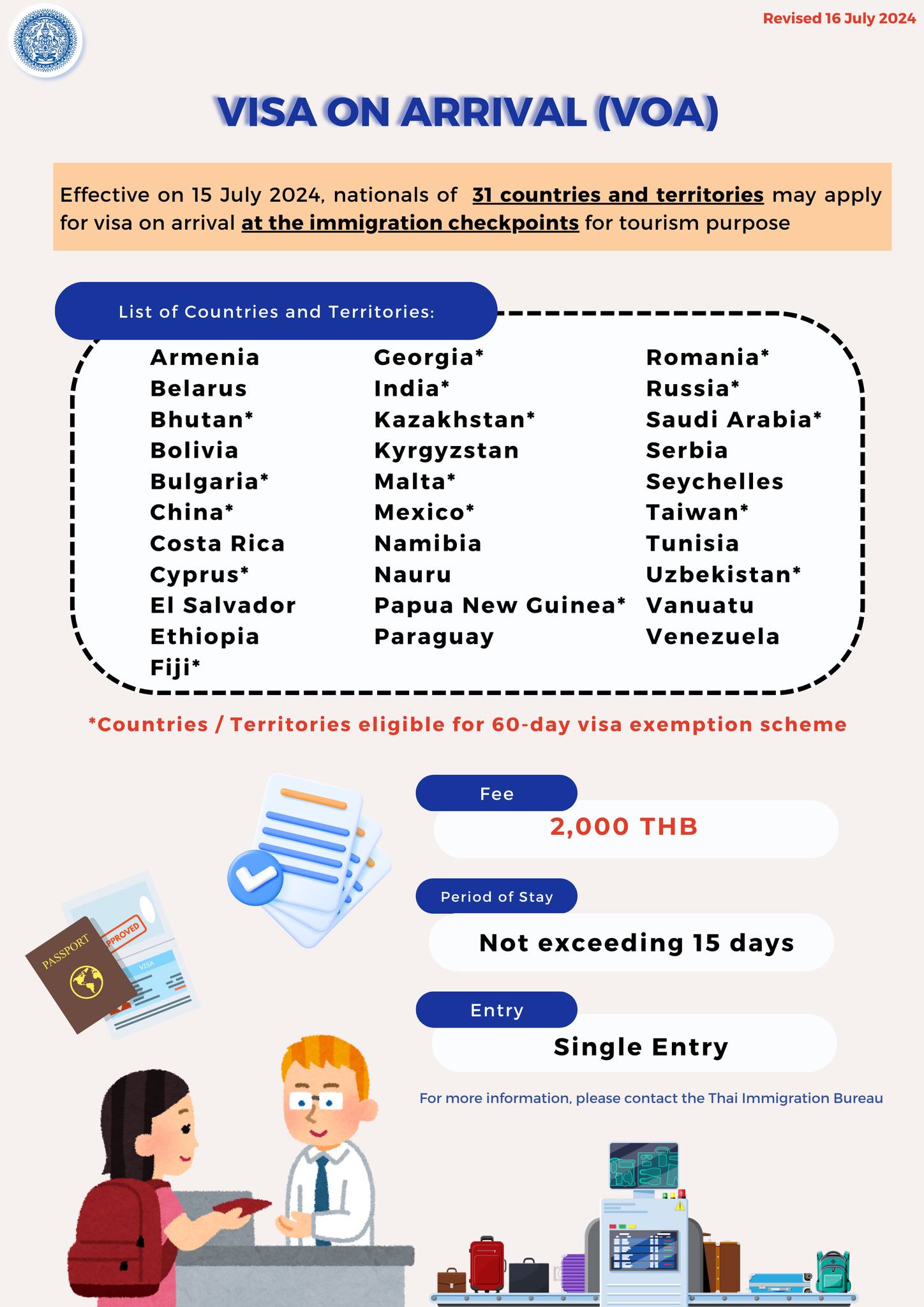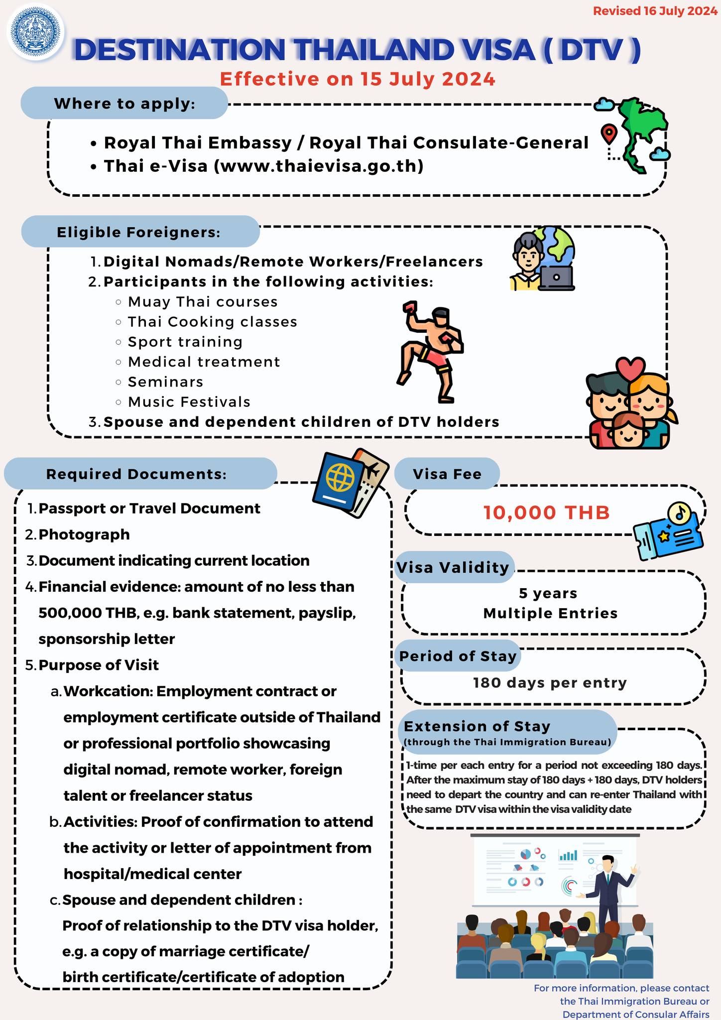 Thailand announced new visa measures to enhance Thailand’s tourism and economy, which took effect on 15 July 2024. From: กระทรวงการต่างประเทศ Ministry of Foreign Affairs of the Kingdom of Thailand