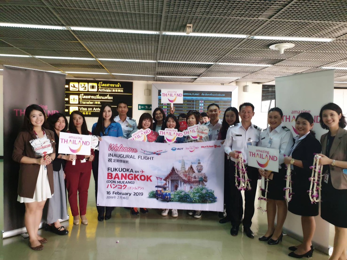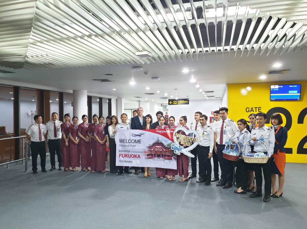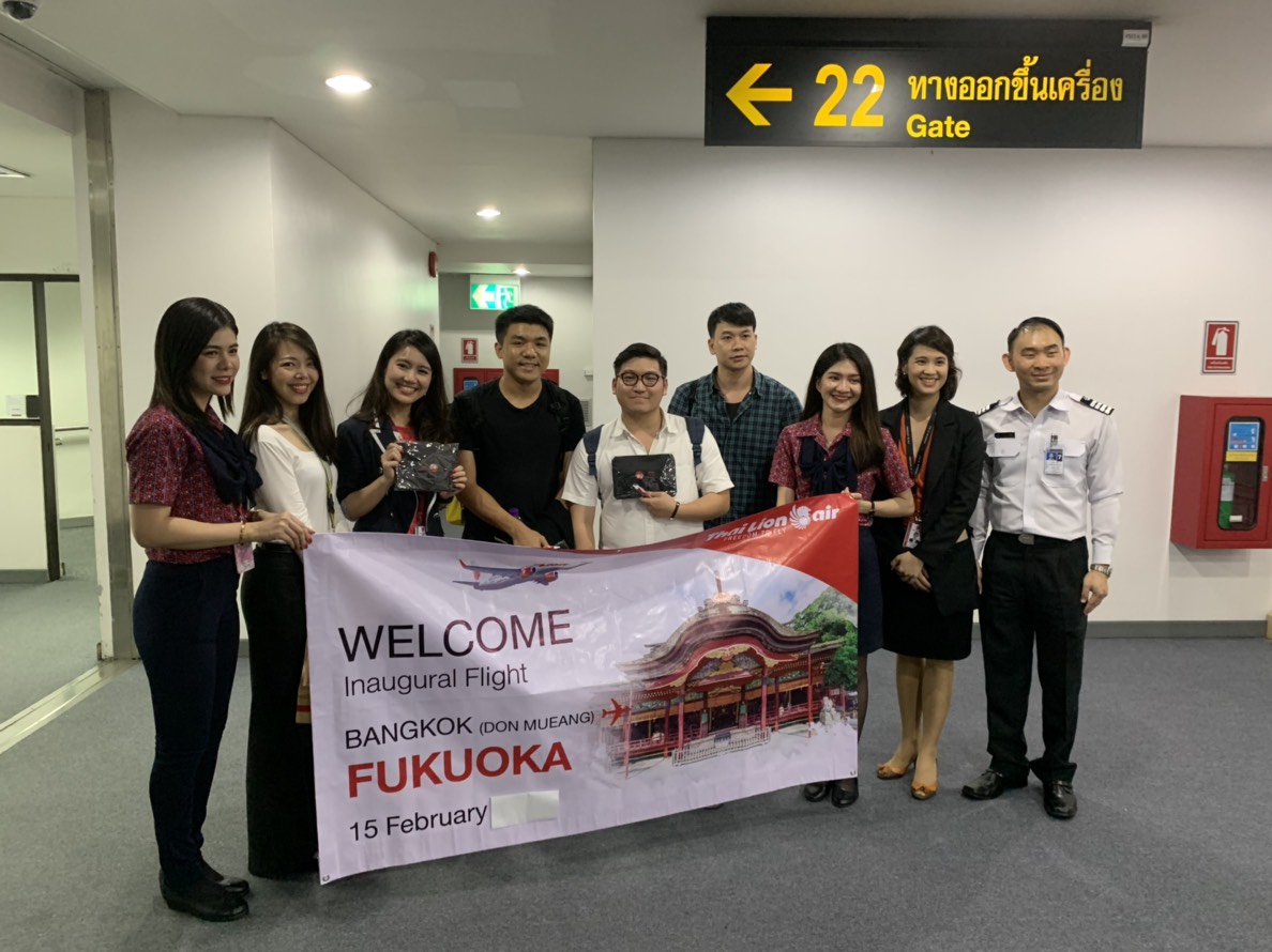 Thai Lion Air ‘s Management and staff, Management from Don Mueang International Airport and Chubb Travel Insurance are celebrated Inaugural flight from Bangkok (Don Mueang) to Fukuoka, Japan and give souvenir to passengers. Moreover, Thai Lion Air, Tourism Authority of Thailand (Fukuoka Office) and Management from Don Mueang International Airport are celebrated Inaugural flight from Bangkok (Don Mueang) to Fukuoka, Japan and operates this new route with Boeing 737 MAX 9.